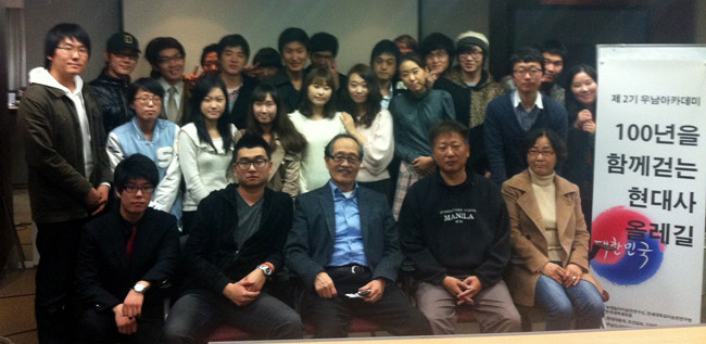 ▲제2기 우남아카데미 대학생들이 수료증을 들고 기념촬영을 하고 있다.ⓒ 뉴데일리