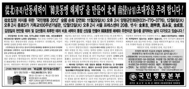 조선일보 2011.11.28從北집권 저지를 위한 ‘국민행동 2012’ 全國 순회 강연회: