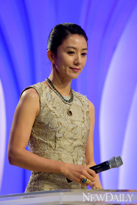 1일 저녁 서울 중구 순화동에 위치한 JTBC사옥에서 '부활 TBC 탄생 JTBC! 개국 축하 쇼쇼쇼'가 열린 가운데 배우 김희애가 진행을 보고 있다.