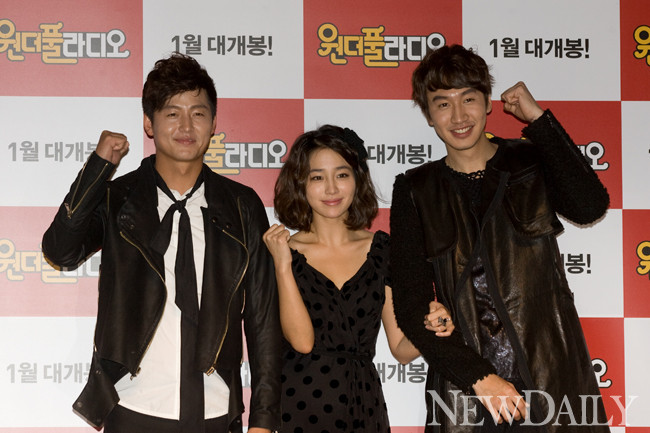 6일 오전 서울 중구 정동에 위치한 이화여고 100주년 기념관에서 영화 ‘원더풀 라디오’의 제작 보고회가 열린 가운데 배우 이정진, 이민정, 이광수가 포토세션을 갖고 있다.