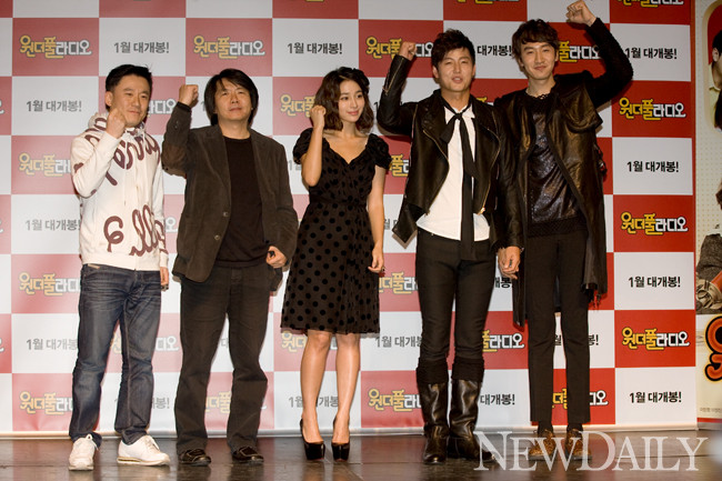 6일 오전 서울 중구 정동에 위치한 이화여고 100주년 기념관에서 영화 ‘원더풀 라디오’의 제작 보고회가 열린 가운데 권칠인 감독과 각본을 맡은 이재익 PD, 배우 이민정, 이정진, 이광수 등이 포토세션을 갖고 있다.