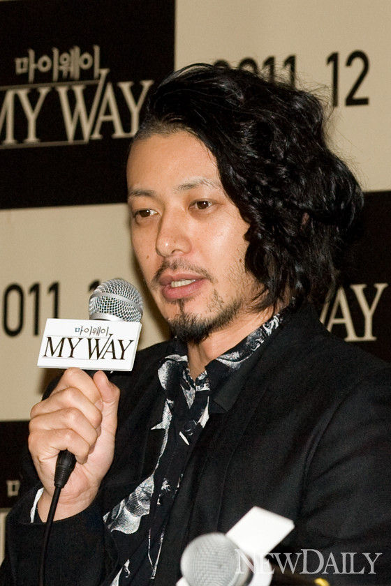 13일 오후 서울 왕십리CGV에서 영화 ‘마이웨이’의 언론시사회 및 기자간담회가 열린 가운데 배우 오다기리 조가 취재진의 질문에 답하고 있다.