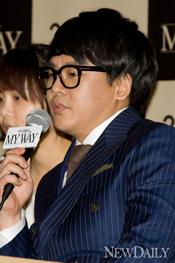 13일 오후 서울 왕십리CGV에서 영화 ‘마이웨이’의 언론시사회 및 기자간담회가 열린 가운데 배우 김인권이 취재진의 질문에 답하고 있다.