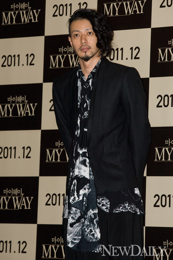 13일 오후 서울 왕십리CGV에서 영화 ‘마이웨이’의 언론시사회 및 기자간담회가 열린 가운데 배우 오다기리 조가 포토세션을 갖고 있다.