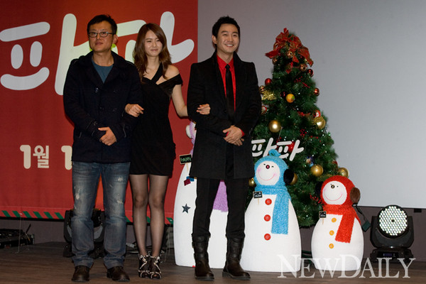 13일 오전 서울 롯데시네마 건대입구점에서 영화 ‘파파’의 제작보고회가 열린 가운데 한지승 감독, 배우 고아라, 박용우가 포토세션을 갖고 있다.