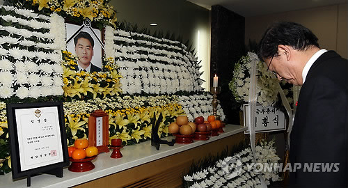 이날 오전 인하대병원 장례식장을 떠난 이 경사의 유해와 영정, 위패는 800여명의 조문객들이 비통해하는 가운데 해경 군악대의 조곡 속에 영결식장에 도착했다.
