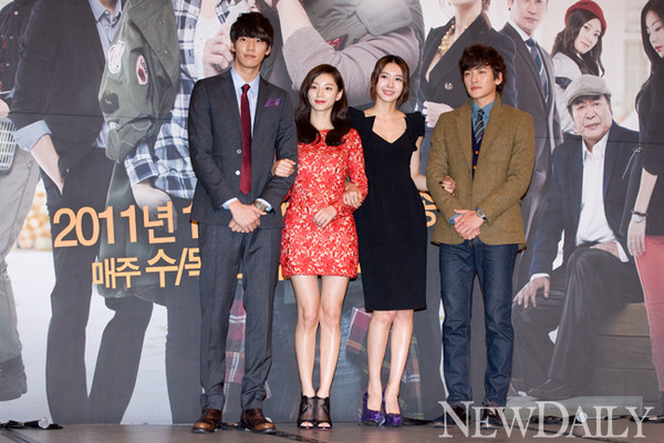 14일 오후 서울 마포구에 위치한 가든호텔에서 채널A 개국 특별기획드라마 ‘총각네 야채가게’의 제작 발표회가 열린 가운데 배우 김영광, 박수진, 왕지혜, 지창욱이 포토세션을 갖고 있다.