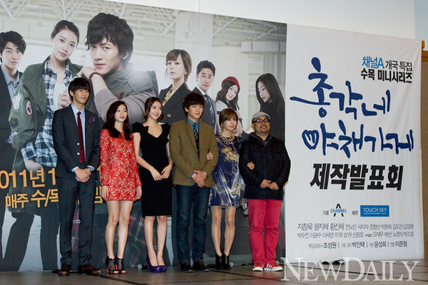 • 14일 오후 서울 마포구에 위치한 가든호텔에서 채널A 개국 특별기획드라마 ‘총각네 야채가게’의 제작 발표회가 열린 가운데 연출을 맡은 이준형 감독과 배우 김영광, 박수진, 왕지혜, 지창욱, 황신혜가 포토세션을 갖고 있다.