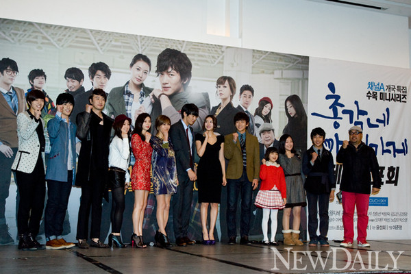 14일 오후 서울 마포구에 위치한 가든호텔에서 채널A 개국 특별기획드라마 ‘총각네 야채가게’의 제작 발표회가 열린 가운데 연출을 맡은 이준형 감독과 출연진들이 포토세션을 갖고 있다.