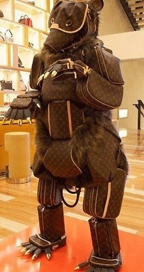 공개된 사진 속에는 일반 곰 인형과 다르지 않은 갈색 곰 인형이 담겨 있는데, 자세히 살펴보면 단순한 곰 인형이 아닌 유명 명품브랜드들의 가방으로 구성되어 있다.