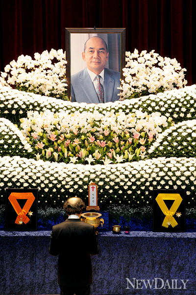 [뉴데일리] 양호상 기자 = 故 박태준 명예회장 영결식이 17일 오전 서울 동작동 국립묘지 현충관에서 열린 가운데 조정래 작가가 조사를 낭독하고 있다.