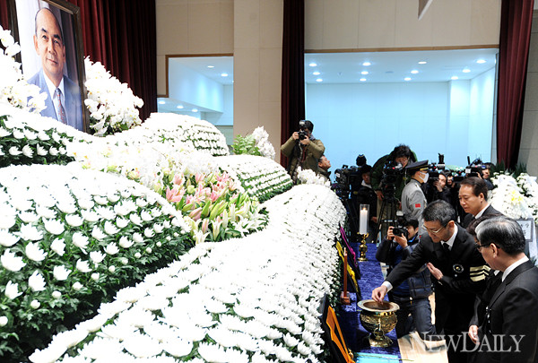 [뉴데일리] 양호상 기자 = 故 박태준 명예회장 영결식이 17일 오전 서울 동작동 국립묘지 현충관에서 열린 가운데 박태준 명예회장의 아들 박성빈씨가 분향을 하고 있다.