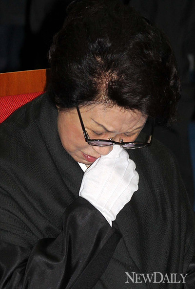 [뉴데일리] 양호상 기자 = 故 박태준 명예회장 영결식이 17일 오전 서울 동작동 국립묘지 현충관에서 열린 가운데 추모객이 고인의 추모영상을 보며 눈물을 흘리고 있다.