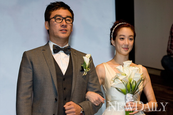 19일 오전 11시 영화 ‘네버엔딩 스토리’의 제작 보고회가 열린 가운데 배우 엄태웅과 정려원이 웨딩 퍼포먼스를 하고 있다.