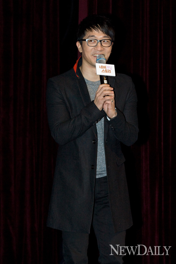 19일 오전 11시 영화 ‘네버엔딩 스토리’의 제작 보고회가 열린 가운데 배우 엄태웅과 정려원이 웨딩 퍼포먼스 중 가수 알렉스가 축가를 부르고 있다.