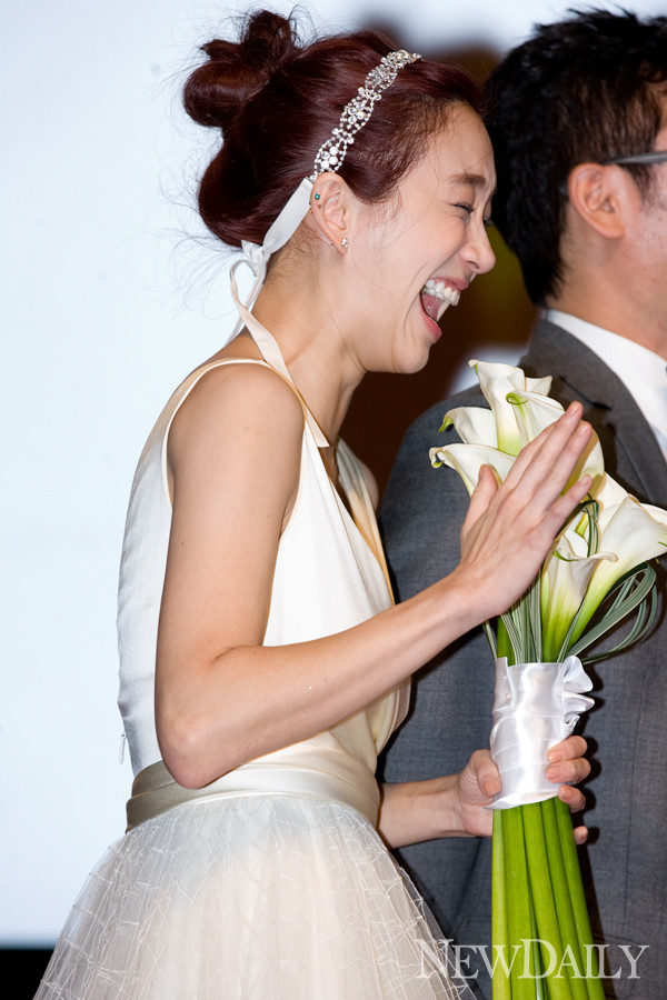 19일 오전 11시 영화 ‘네버엔딩 스토리’의 제작 보고회가 열린 가운데 배우 정려원이 웨딩 퍼포먼스를 하고 있다.