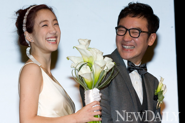 19일 오전 11시 영화 ‘네버엔딩 스토리’의 제작 보고회가 열린 가운데 배우 엄태웅과 정려원이 웨딩 퍼포먼스를 하고 있다.