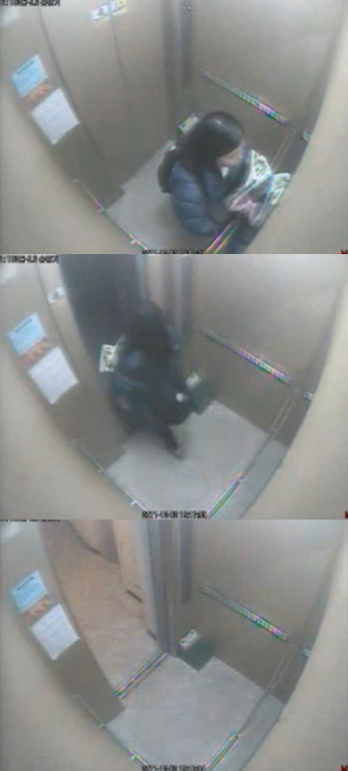 공개된 사진은 A양이 자살하기 위해 올라 탄 엘리베이터 CCTV에 찍힌 사진으로, 책을 가슴에 품은 채 거울에 비친 자신의 모습을 한참 동안 바라보고 있어 충격을 주고 있다.