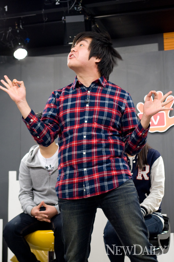 21일 저녁 서울 상암동에 위치한 '손바닥tv' 스튜디오에서 '박명수의 움직이는 TV' 생방송이 진행된 가운데 개그맨 홍현우가 개그를 선보이고 있다.