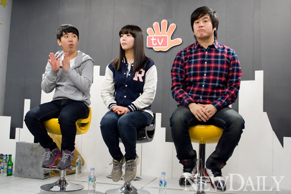 21일 저녁 서울 상암동에 위치한 '손바닥tv' 스튜디오에서 '박명수의 움직이는 TV' 생방송이 진행된 가운데 개그맨 남태령, 홍현우와 개그우먼 박주영이 출연했다.