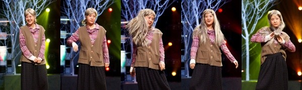 '엄마미소'의 백발 할머니로 등장한 강유미는 3초 만에 섹시한 얼짱할매로 돌변하며 반전 재미를 전한다. 이에 녹화 현장의 방청객들은 폭발적인 박수로 성원했다는 후문.