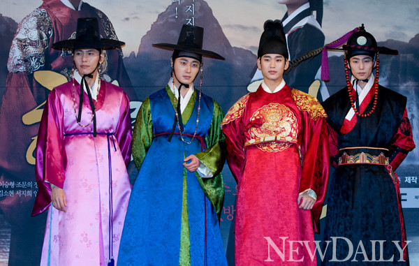 2일 오후 2시 서울 영등포구에 위치한 63빌딩 주니퍼홀에서 MBC 수목미니시리즈 ‘해를 품은 달’의 제작 발표회가 열린 가운데 배우 송재희, 정일우, 김수현, 송재림이 포토세션을 갖고 있다.