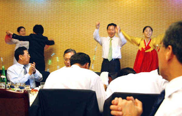 ▲김근태는 북핵 실험 직후인 2006년 10월20일 개성을 방문, 북한 접대원들과 '춤판'을 벌였다.