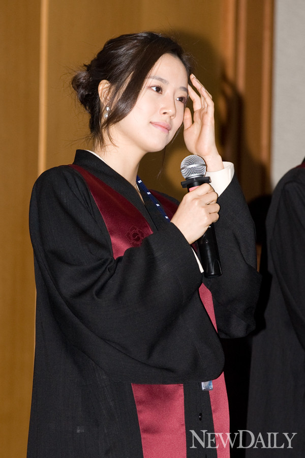 4일 오전 11시 서울 대검찰청 대회의실에서 제 4대 명예검사 위촉식이 열린 가운데 명예 검사로 선정된 배우 문채원이 소감을 전하고 있다.