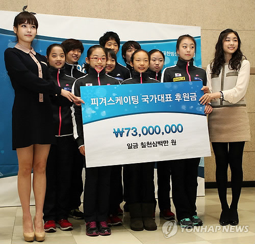 김연아는 4일 오후 3시 서울 노원구 공릉동에 위치한 태릉선수촌 국제스케이트장 2층 회의실에서 가수 아이유(19)와 함께 '얼음꽃' 음원 수익금 전달식을 가졌다.