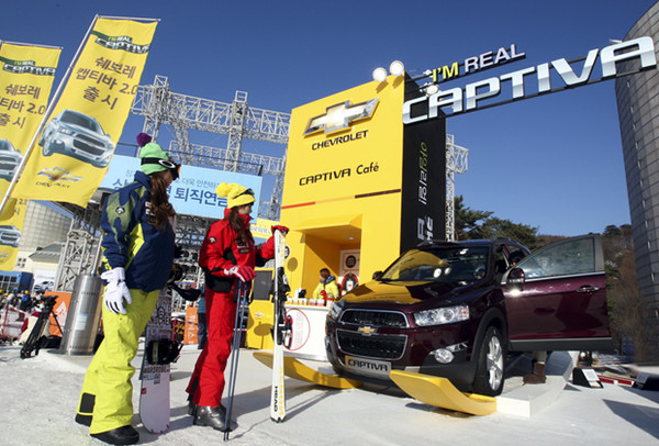 한국GM주식회사(이하 쉐보레)는 9일 “진짜 SUV 쉐보레 캡티바(Captiva) 2.0디젤의 시판을 축하하고자 강원도 평창 휘닉스파크에서 이달 24일까지 ‘쉐보레 캡티바 리얼 윈터 페스티벌(Chevrolet Captiva Real Winter Festival)’을 개최한다”고 밝혔다.
