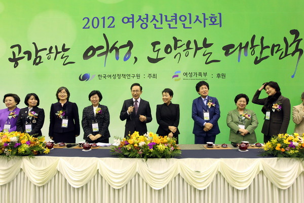 이명박 대통령은 12일 부인 김윤옥 여사와 함께 `2012년 여성계 신년인사회'에 참석했다.