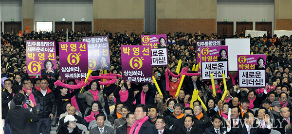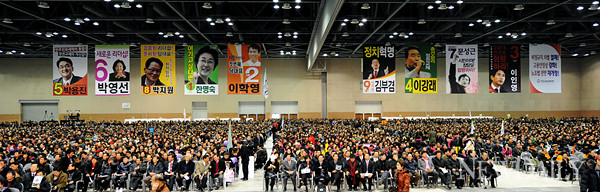 15일 오후 경기도 일산 킨텍스에서 진행된 민주통합당 당대표 및 최고위원 선출대회가 열리고 있다.