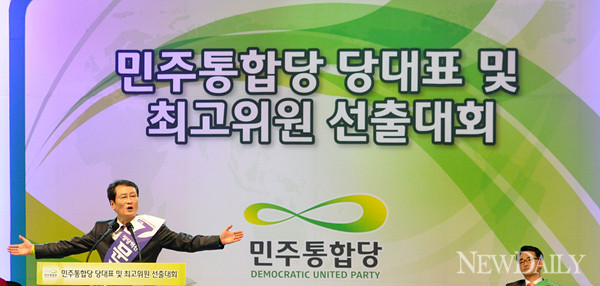 15일 오후 경기도 일산 킨텍스에서 진행된 민주통합당 당대표 및 최고위원 선출대회에서 문성근 후보가 연설을 하고 있다.