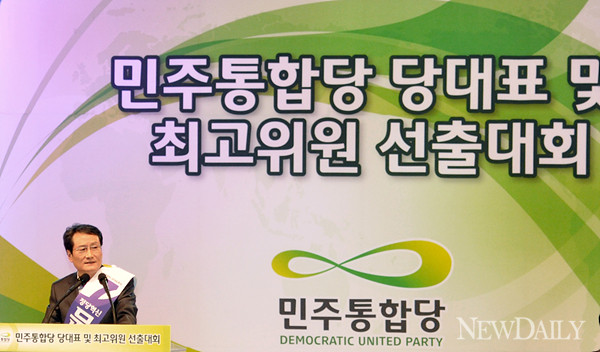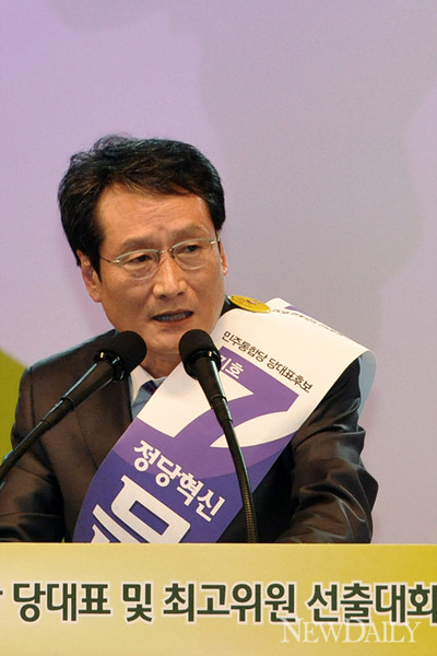 15일 오후 경기도 일산 킨텍스에서 진행된 민주통합당 당대표 및 최고위원 선출대회에서 문성근 후보가 연설을 하고 있다.
