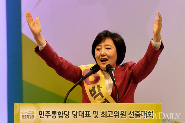 15일 오후 경기도 일산 킨텍스에서 진행된 민주통합당 당대표 및 최고위원 선출대회에서 박영선후보가 연설을 하고 있다.