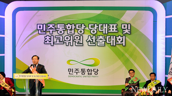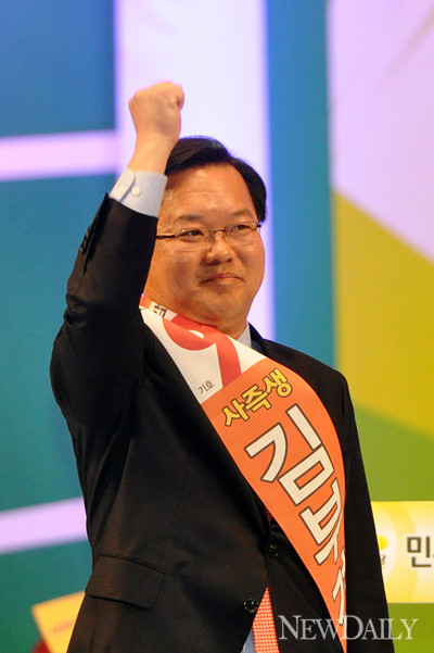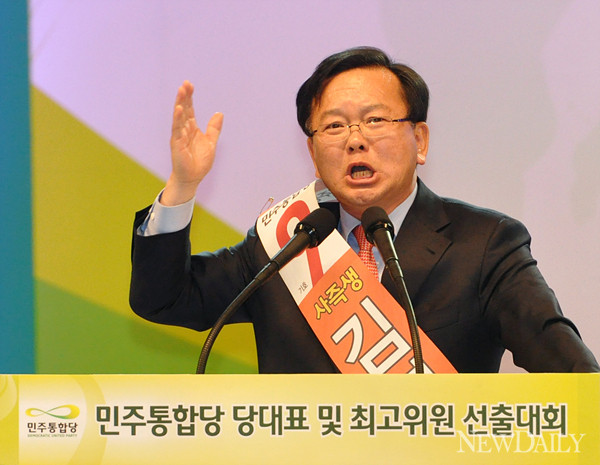 15일 오후 경기도 일산 킨텍스에서 진행된 민주통합당 당대표 및 최고위원 선출대회에서 김부겸 후보가 연설을 하고 있다.