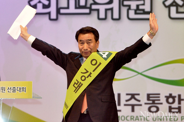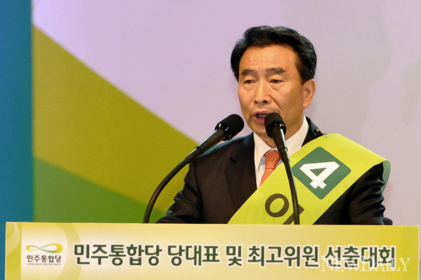 15일 오후 경기도 일산 킨텍스에서 진행된 민주통합당 당대표 및 최고위원 선출대회에서 이강래후보가 연설을 하고 있다.
