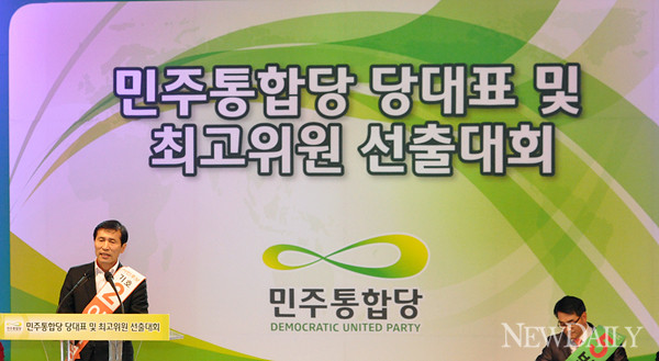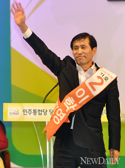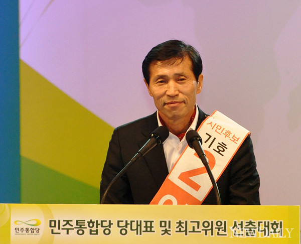 15일 오후 경기도 일산 킨텍스에서 진행된 민주통합당 당대표 및 최고위원 선출대회에서 이학영 후보가 연설을 하고 있다.