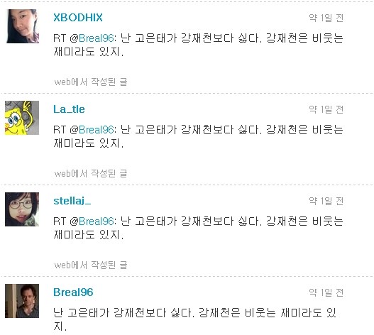 바로 아세요~! 그렇게 말하고 부추기는 자들이 바로 <종친초>라고 보면 대략 맞는 말이 될 것입니다. 더 큰 문제는 진실을 전하는 사람들도 그런 거짓말, 왕따 전략에 동조하는 사람들이 있다는 것입니다. 뽐뿌쟁이 글을 리트윗 하다가 팔로워가 줄어드는 것을 보고 겁을 먹는 사람이 있다는 말쌈~ 뿌잉~~