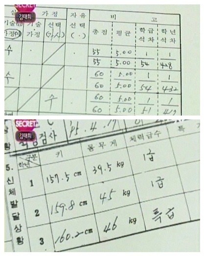 주목할 만한 부분은 김태희가 학업 성적 외에도 체력급수에서도 1급을 받는 등 '양수겸장'의 학생이었다는 사실.
