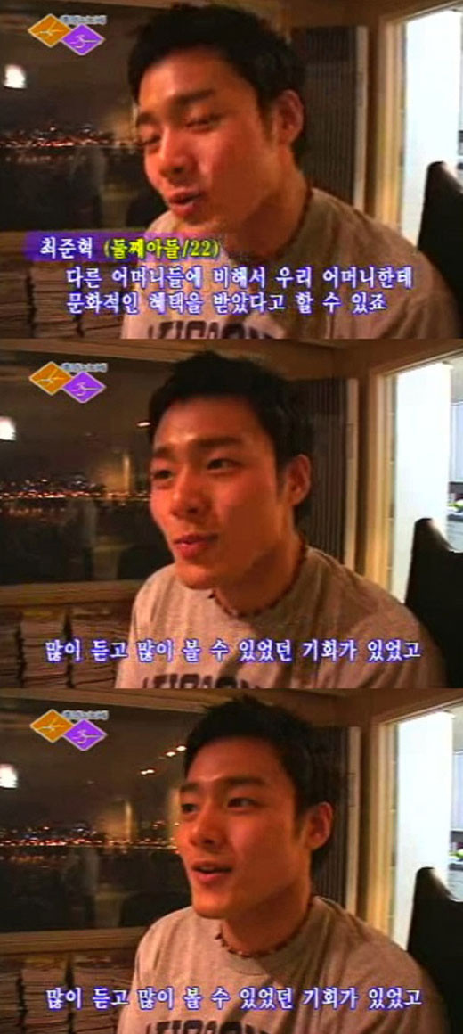 이는 7년 전 최준혁 씨가 어머니와 함께 방송에 출연한 영상을 캡처한 것으로, 사진 속 최준혁 씨는 뚜렷한 이목구비를 소유한 ‘조각외모’로 오똑한 콧날과 날렵한 턱선을 뽐내고 있다.