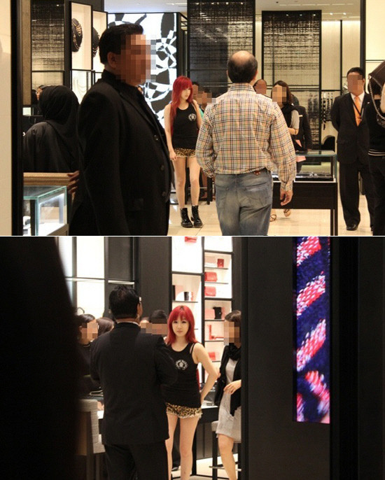 사진 속 박봄은 백화점에서 쇼핑을 하고 있다. 와인빛으로 염색한 박봄은 헤어와 백옥같은 피부가 대비돼 더욱 섹시미를 강조했다.