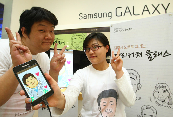 5일 열린 '캐리커처 클래스'에서 캐러커처 작가가 갤럭시 노트로 개그맨 유민상 씨의 캐리커처를 그려줬다.