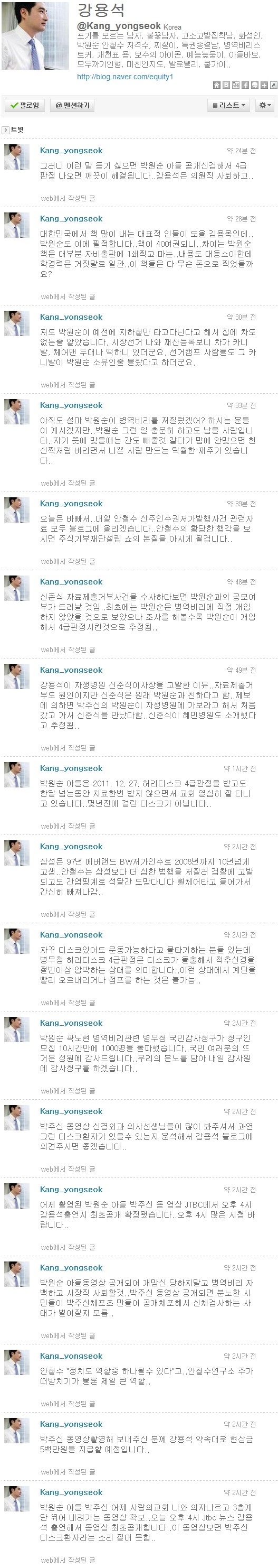 강용석 의원의 일타쌍피의 전설도 그 막바지를 향해 가고 있다. 2월5일, 일요일 드디어 박원순의 아들인 박주신이 3층에서 1층까지 뛰어 내려가는 모습을 동영상에 담은 모습이 2월 6일 오후 4시 JTBC <사사건건>에서 최초로 공개된다. 박원순이 어떤 대응을 할지 궁금하다.