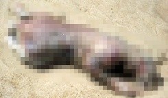 당시 해변가에서 발견된 괴사체는 기괴한 형상으로 인해 많은 논란을 불러 일으켰으나 확인 결과 불에 탄 너구리 사체로 밝혀졌다.