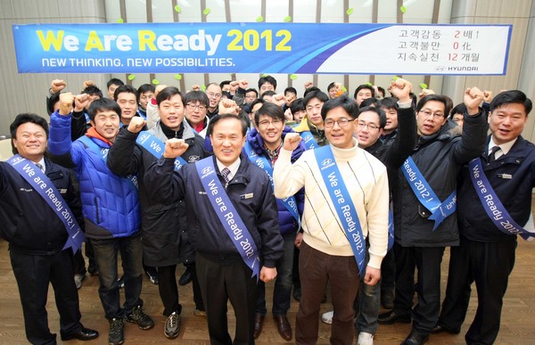 현대자동차는 10일 2012년을 고객만족을 넘어 고객감동을 실현하는 해로 정하고 ‘We are Ready 2012!’ 캠페인을 실시한다고 밝혔다.