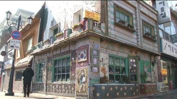 여자가 향한 곳은 인천의 한 카페. 놀랍게도 카페 안팎은 온통 병뚜껑으로 뒤 덮여 있었다. 알록달록한 병뚜껑을 이용해 천사, 태극기 등을 만들어 인테리어를 했고 버려진 병뚜껑은 예술작품으로 변해 있었다.