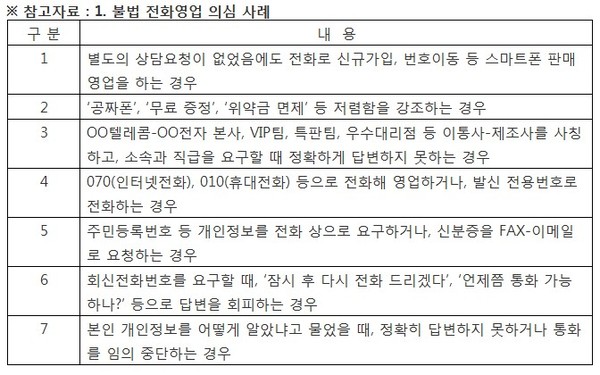 실제로 SK텔레콤은 불법 전화영업 업체와 공모한 판매점과 해당 매장을 관리하는 대리점 20곳을 적발하고 영업정지 시켰다.