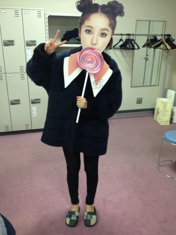 사진 속 윤은혜는 팬미팅 행사에서 사용한 큰 가면으로 얼굴을 가리고 포즈를 취하고 있다.