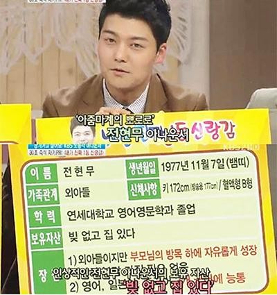 한편, 전현무는 이날 방송에서 이상형 월드컵을 통해 과거 열애설이 불거졌던 박은영 아나운서가 아닌 배우 성유리를 최종 이상형으로 지목해 눈길을 끌었다.